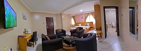Featuring free WiFi, a restaurant and a barbecue, Celia's Suites offers accommodations in Abeokuta. The hotel has a hot spring bath and fitness center, and guests can enjoy a drink at the bar. Free private parking is available on site. Each room is equipped with a flat-screen TV with satellite channels. Some units include a seating area for your convenience. Rooms are fitted with a private bathroom equipped with a bath. There is a 24-hour front desk at the property.