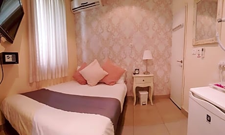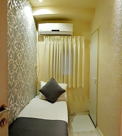 Compact air-conditioned room with a private bathroom, an LCD satellite TV and kettle. Wi-Fi is free.