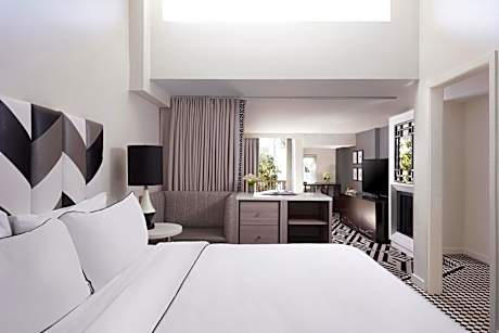 Just steps away from the famous Sunset Boulevard, the Chamberlain West Hollywood offers accommodations in the heart of West Hollywood. Guests can enjoy the on-site restaurant & rooftop pool that features full panoramic views of West Hollywood. Each of The Chamberlain’s spacious suites feature separate living spaces, fireplaces, and a wide array of luxury amenities like two 60” HD TVs, a mini-bar with refrigerator A private balcony is also included in every suite. Accessible rooms are available upon request. The hotel’s modern decor is reflective of an old Hollywood aesthetic with curated art pieces and contemporary furniture. The Chamberlain’s restaurant and bar offers New American cuisine in a chic yet comfortable atmosphere. The restaurant will also offer a garden patio. Other facilities available to guests include dry cleaning & laundry service, a 24-hour fitness center. The rooftop pool terrace offers panoramic views of West Hollywood, the Hollywood Hills, & downtown Los Angeles. The terrace is home to lounge areas & private cabanas available to rent. The hotel is positioned just minutes from some of area’s most celebrated attractions, including the Pacific Design Center, the Sunset Strip, Rodeo Drive, West Hollywood Design District, The Grove and the Beverly Center. Please note that a maximum of 2 pet(s) is allowed Please note that the property can only allow pets with a maximum weight of 50 pounds.