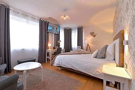 10 miles from Colmar Train Station in Rouffach, Chambres Vignes et Châteaux provides accommodations with access to a sauna, hot tub, and spa facilities. This property offers a private pool and free private parking. The bed and breakfast offers mountain views, a sun terrace, and free Wifi is available throughout the property. At the bed and breakfast, units come with air conditioning, a seating area, a flat-screen TV with streaming services, a kitchen, a dining area, and a private bathroom with bathrobes, a walk-in shower, and slippers. A dishwasher, an oven, and microwave are also offered, as well as a coffee machine and a kettle. At the bed and breakfast, all units include bed linen and towels. Buffet and continental breakfast options with warm dishes, local specialities, and fresh pastries are available. There is a coffee shop, bar, and lounge. For guests with children, the bed and breakfast features kids pool and outdoor play equipment. Guests at Chambres Vignes et Châteaux can enjoy billiards on-site, or go cycling or hiking in the surrounding area. House of the Heads is 10 miles from the accommodation, while Saint Martin Collegiate Church is 10 miles from the property. EuroAirport Mulhouse Airport is 29 miles away.