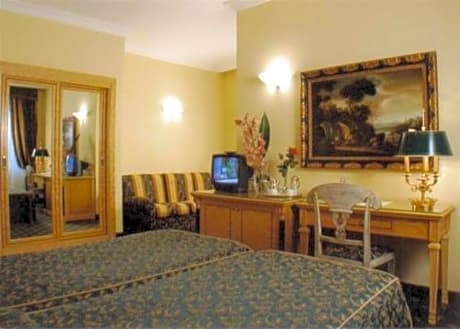Located in the heart of Rome, 656 feet from Termini Station, Hotel Champagne Palace is set in a historic building. It features an elegant décor, original paintings and ancient furnishings. All of our rooms are airconditioned with a satellite Tv and some of them have city views. Each has a private bathroom with tiled floors. WiFi is free at reception. The Champagne Palace is just a 15-minute walk from the Roman Forum and the Coliseum. The surrounding area is full of traditional restaurants and cafés. The reception is open 24h everyday.