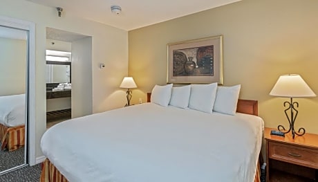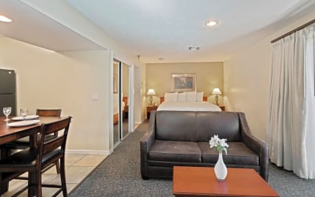 This 2-bedroom suite has a seating area, fully equipped kitchen, and a private bathroom.