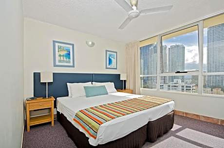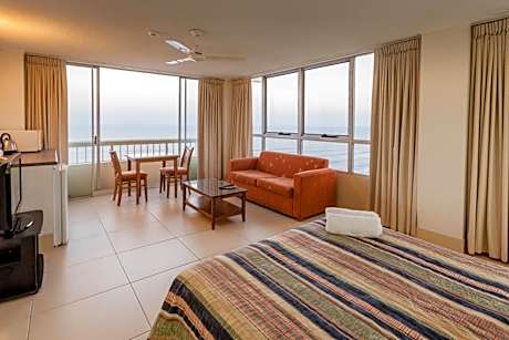 Offering beachfront accommodations just 49 feet from Surfers Paradise Beach, this resort features a heated pool, tennis court and sauna. Guests enjoy a hot tub, games room and barbecue facilities. All accommodations has beach or ocean views and a flat-screen TV with satellite channels. Covered parking is available for one vehicle, per room. Chateau Beachside Resort is surrounded by shopping, dining and nightlife options. Alternatively, guests can relax with a meal or drink at the on-site bar and restaurant. The tour desk can book theme park tickets, fishing charters, diving and cruises. Reception also hires out beach equipment such as chairs and sun umbrellas. Chateau Resort is 8 minutes’ drive from Seaworld and 12 minutes’ from Surfers Paradise Golf Course. It is 14 mi from Coolangatta Airport and 54 mi from Brisbane Airport.