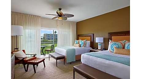 Each guestroom at Cheeca Lodge & Spa features dark hardwood furniture, a balcony with stunning resort views, a 42-inch flat-screen TV with a DVD player, and free WiFi. Additional conveniences include an in-room safe and a coffee maker.