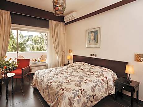 Hotel Chellah is located in the heart of Tangier yet only 2297 feet from the city’s northern beaches. It offers air-conditioned rooms and a large outdoor swimming pool. The rooms at the Chellah hotel are decorated in a contemporary style with Morroccan motifs. All rooms have cable TV and their own bathroom with a shower. The hotel’s restaurant features a light-filled dining terrace. It serves dishes from around the world as well as local specialties. The spacious bar and guest salon have colorful sofas and carved Moroccan ceilings. An outdoor swimming pool, shaded by palm trees offers guests a place to cool off. Alternatively, local beaches can be accessed in less than 5 minutes’ walk. Please note that swimming in burkini is not allowed in the pool.