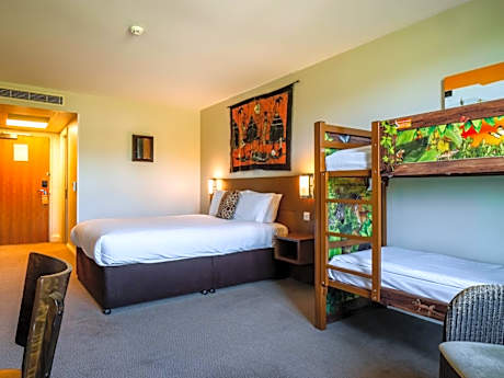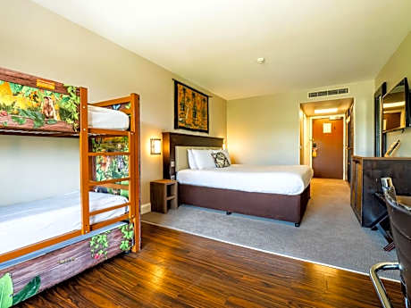 This modern hotel with a stylish safari theme is located at the Chessington World of Adventures Resort. There is free parking and free WiFi in public areas. Chessington Hotel offers rooms with air conditioning, a desk and power shower. It is an ideal meeting venue, with 6 meeting rooms and easy access from the M25. Heathrow and Gatwick airports are within a 22 mile radius. We have family rooms that have a separate children’s sleeping area with a flat-screen TV with popular kids’ channels. Close by are Epsom and Sandown racecourses, Wimbledon, Hampton Court Palace and Thorpe Park. The unique ZAFARI Bar & Grill has an impressive theater kitchen, a sun terrace and views across the African style animal reserve, Wanyama. The menu offers flame-grilled meats, crisp salads and a range of coffees.