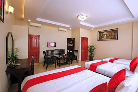 At Chheng Residence, exceptional service and top-notch amenities create a memorable experience for guests. Complimentary internet access is available in the hotel to ensure you stay connected during your visit. Arrange your trips to and from the airport using the hotel's convenient transportation services booking.Car hire and shuttle offerings at the hotel simplify arranging your excursions, explorations, and additional activities in Siem Reap. Complimentary parking is available for guests. Continuously receive the support you require through front desk amenities such as concierge service, express check-in or check-out, luggage storage and safety deposit boxes. At the hotel, their ticket service and tours is also capable of assisting with booking tickets and securing reservations for entertainment and adventures.Chilly nights become more delightful than balmy ones, as you snuggle near the hotel's inviting hearth.Always look your best in your preferred attire with the dry cleaning service and laundry service provided at Chheng Residence. Craving relaxation? In-room amenities such as room service and daily housekeeping allow you to maximize your time spent inside the room.Due to health concerns, smoking is strictly prohibited within the entire premises of hotel.For the health and well-being of all guests and staff, smoking is restricted exclusively to assigned zones. Accommodations come equipped with all the conveniences required for a restful night's slumber.A selection of rooms feature linen service and air conditioning to ensure your comfort and convenience.A few accommodations at Chheng Residence also include unique design elements like a balcony or terrace. In certain rooms, the hotel offers visitors access to a refrigerator, a coffee or tea maker, bottled water, instant coffee, instant tea and mini bar.Chheng Residence offers a hair dryer, toiletries and bathrobes in the restrooms of specific accommodations. All adore a delightful cup of coffee! An on-site coffee shop ensures you can relish a cup of authentic, freshly-brewed coffee every morning -- or whenever you desire it. An evening spent at hotel's bar can offer as much enjoyment as venturing out with your fellow travelers.At Chheng Residence, guests can take pleasure in the delightful recreational amenities provided for their entertainment.Conclude your days in complete tranquility by paying a visit to massage and spa for ultimate relaxation. At Chheng Residence, a wide array of amenities guarantees a fulfilling experience throughout your visit. Make your holiday truly memorable by taking a rejuvenating plunge into the pool. At Chheng Residence, the poolside bar provides an excellent incentive to enjoy extended hours in your swimwear.At the hotel fitness center, you have the option to engage in your daily exercise routine or simply alleviate your jet lag by breaking a sweat.