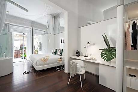 This design hotel is in Barcelona’s trendy Born district, 820 feet from the Picasso Museum. It features a gym, 24-hour reception, and air-conditioned rooms with colorful LED lighting and flat-screen TVs. Free coffee, tea and water are offered in a self-service area in the Chic & Basic Born. The hotel also has a lounge with free Wi-Fi and comfortable designer armchairs. The Modernist-style building has high ceilings, large windows and marble staircases. It is within 328 feet of Ciudadela Park and Barcelona’s Chocolate Museum. La Rambla is a 10-minute walk away. Rooms at the Chic & Basic Born Boutique Hotel feature a glass shower cubicle in the center of the room. There is also a hairdryer, slippers and bathroom amenities. Breakfast is served in the Chic & Basic's Moderna bar, where you can also enjoy a cocktail. It is open 7 days a week from 08:00 to 22:00