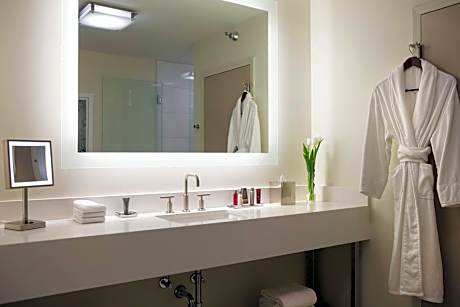 Each contemporary guest room features a 32-inch flat-screen LCD TV with premium cable channels, a large work desk with an ergonomic chair, and a coffee maker. Free WiFi ensures connectivity throughout the stay. Guests can enjoy a variety of dining options, including gourmet to-go food at Rush Street Pantry, craft cocktails and street food at Reviver – Bar, and classic Chicago-style cuisine at Harvest – Restaurant. A Starbucks is also conveniently located in the hotel lobby.