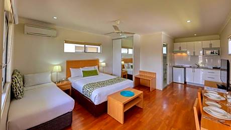Chinchilla Motor Inn is on 2.5 acres of landscaped parkland 1 minutes' drive from Chinchilla CBD. Features include detached villas with free WiFi and a kitchen or kitchenette with access to an outdoor pool. Each modern villa has an outdoor seating area, dining area, and a flat-screen cable television. Guests will also have an en suite with a shower and free toiletries. Extras include a desk and bed linen. Chinchilla Motor Inn is a 5-minute drive from both Chinchilla Central Shopping Center and Chinchilla Showground.