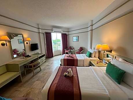 Cholchan Pattaya Beach Resort offers top-notch services and amenities, ensuring guests experience utmost comfort.Maintain seamless communication using the complimentary Wi-Fi at resort.Effortlessly arrange transportation to and from the airport using the resort's airport transfer services. Discovering Pattaya becomes even more accessible, thanks to the taxi amenities provided at the resort. For visitors traveling by automobile, complimentary parking is available.During your stay at this fantastic resort, the attentive front desk personnel can provide you with a range of amenities such as concierge service, luggage storage and safety deposit boxes.In search of city's top entertainment, seek assistance at the resort's ticket service and tours for reservations. At the resort, utilize the on-site dry cleaning service and laundry service to maintain your beloved travel attire fresh, allowing you to bring fewer clothes. Craving relaxation? Make the most of your stay at the Cholchan Pattaya Beach Resort with convenient amenities like 24-hour room service, room service and daily housekeeping at your disposal.Kindly note that smoking is prohibited in the resort to ensure fresher air for all visitors. For visitors wishing to smoke, designated smoking zones can be found.At Cholchan Pattaya Beach Resort, every guestroom is provided with convenient amenities and fittings to ensure a comfortable stay. Enhance your experience at resort with the knowledge that certain rooms are equipped with linen service, blackout curtains and air conditioning for your convenience.Certain rooms boast in-room amusement features such as television and cable TV, offering guests an enjoyable stay.In select rooms within the resort, a refrigerator, a coffee or tea maker, bottled water and mini bar is available to cater to your requirements when desired. In the resort, certain guest bathrooms come equipped with essential bathroom amenities, such as a hair dryer, toiletries, bathrobes and towels, ensuring a comfortable stay for guests. Begin your day with a scrumptious on-site breakfast available each morning at Cholchan Pattaya Beach Resort. Begin your day feeling refreshed and invigorated as you enjoy a delightful cup of quality coffee available at the cafe situated within the resort. At the resort, an assortment of easily accessible and delicious meal choices are available to satisfy your appetite whenever it strikes. At Cholchan Pattaya Beach Resort, they are committed to catering to your unique requirements. They offer a variety of meal choices, encompassing halal alternatives for those with special dietary preferences. Enjoy an entertaining evening with your fellow travelers at the resort's bar.Cholchan Pattaya Beach Resort provides a superb assortment of leisure amenities for guests to enjoy.During your stay, don't forget to allocate some moments to experience the readily available shoreline. Be sure to drop by the pool at resort at least once during your stay. At Cholchan Pattaya Beach Resort, utmost care is taken to ensure guests' comfort. Relish your preferred beverage in your swimwear by the resort's poolside bar. Discover the fitness amenities at resort to maintain your health and strength during your getaway.