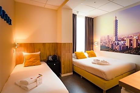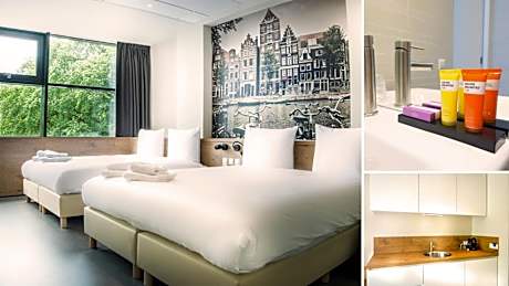 The new Citiez Hotel Amsterdam is characterized by designer rooms with a city theme. Guests benefit from an All Day Café and free WiFi. A direct tram connection will bring you to the city center, World Fashion Center and Amsterdam Lelylaan train station. All city-rooms have panoramic windows, air conditioning, comfortable divans, a private bathroom with rain shower, flat screen TV and a safe. The larger rooms also have Nespresso coffee and tea facilities. The All Day Café is open 24/7 and has warm, contemporary furnishings. In addition to healthy breakfasts you can enjoy coffee, sandwiches, drinks and quick, freshly prepared meals. Located in the Osdorpplein shopping center, shops and businesses including H&M, Douglas, WE Fashion, a Fit For Free gym and perfumeries are around the corner of Citiez. Sloterplas recreation area and Meervaart theater are a 5-minute walk away. There is also a recently opened food court with international cafés and restaurants nearby. Lelylaan station is a 10-minute tram ride away, from where you can travel directly to Schiphol Airport and the RAI Convention Center. Schiphol is a 14-minute drive from Citiez and parking can be done in the adjacent secured parking garage which offers free car park for hotel guests.