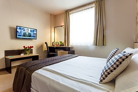 This room has a double bed, air conditioning, a seating area and a flat-screen TV with cable channels.