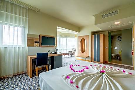Experience an abundance of unparalleled facilities and features at City Live Hotel.Share your photos and respond to emails at your convenience, thanks to the free Wi-Fi internet access offered by hotel. Taxi offerings at the hotel enhance the ease of discovering Antalya.Visitors can take advantage of complimentary parking directly at the hotel. Reception services such as concierge service, luggage storage and safety deposit boxes are available to accommodate your requirements.Relax and feel the warmth in the hotel's inviting lobby, featuring an enchanting on-site fireplace.Traveling with minimal baggage is achievable at City Live Hotel, as the hotel's dry cleaning service and laundry service ensures your garments stay fresh.Room amenities like 24-hour room service, room service and daily housekeeping contribute to making a perfect selection for your stay.Smoking is limited to specified smoking zones. Each accommodation at City Live Hotel is thoughtfully created and adorned to provide visitors with a comfortable, home-like atmosphere.In certain rooms, the hotel offers linen service and air conditioning for guest convenience and satisfaction.At City Live Hotel, the uniquely tailored rooms provide a configuration choice resembling a balcony or terrace.In select rooms, guests can enjoy a touch of amusement with the availability of television for their entertainment. Rest assured, in a few chosen rooms, you will find the convenience of a coffee or tea maker, instant coffee, instant tea and mini bar at your disposal. Maintain your cleanliness and comfort using a hair dryer, toiletries and bathrobes available in select guest restrooms. Embark on your holiday experience in the most ideal manner. Commence each morning of your visit with an on-site breakfast. Experience the delight of a fresh morning by savoring excellent coffee at the cafe situated within hotel. Should you prefer not to venture out for a meal, the enticing culinary choices at hotel are always available for your satisfaction.Experience an unforgettable evening with your fellow travelers just a short distance away, at hotel's bar.Indulge in the numerous pursuits available at City Live Hotel.Make certain to allocate time for discovering the shoreline, easily reachable right from the hotel.Unwind after a long day by stopping by massage, steam room, spa and sauna to rejuvenate your senses.Each day at hotel, immerse yourself in the invigorating waters of the pool, perfect for a rejuvenating plunge or a series of revitalizing laps. For individuals who don't want to skip their exercise routine, visiting the hotel fitness center ensures you maintain your vitality and wellness.