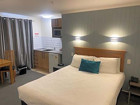 City Suites offers spacious, modern studios and apartments with self-catering facilities. The property is just 10 minutes’ walk from Tauranga city center. Guests enjoy free WiFi, an outdoor swimming pool and secure car parking. All accommodations at City Suites includes satellite TV and a DVD player. Each has a kitchenette with a microwave, toaster and tea/coffee making facilities. Some have a private balcony. Heating and air conditioning are provided. City Suites Tauranga is located just 8 minutes’ drive from Tauranga Airport. It is a 10-minute drive to Mount Maunganui Beach and a 15-minute drive to 'The Mount' scenic area.