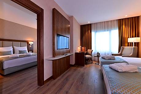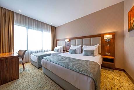 Clarion Hotel Istanbul Mahmutbey Istanbul is located in the Bagcilar district in Istanbul. Property offers indoor pool, spa and wellness center, sauna, hammam and fitness center. Guests can enjoy on-site restaurant and bar. Free WiFi is available throughout the property. Featuring views of city, modernly designed rooms of Clarion Hotel Istanbul Mahmutbey include air conditioning, work desk, electric kettle and TV. Laptop-sized safe box is standard facility for each room type. Private bathrooms come with walk-in shower, slippers, hairdryer, bathrobe and free toiletries. You will find 24-hour front desk at the property. Valet parking, currency exchange service and luggage storage are also offered at Clarion Hotel Istanbul Mahmutbey. Friendly staff can help for car hire service, ticket service and local attractions. Guests can benefit from laundry and dry cleaning services with an additional fee. Suleymaniye Mosque is 11 mi from Clarion Hotel Istanbul Mahmutbey Istanbul, while Galata Tower is 11 mi away. Ataturk Airport is 6.2 mi away while Istanbul Airport is 27 mi away.