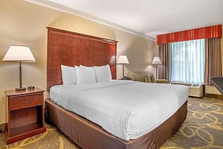 Located in Gonzales, 22 miles from Baton Rouge Little Theater, Clarion Inn Conference Center provides accommodations with a seasonal outdoor swimming pool, free private parking, a fitness center and a garden. With a bar, the 3-star inn has air-conditioned rooms with free WiFi, each with a private bathroom. The property has room service and a 24-hour front desk for guests. All guest rooms at the inn are equipped with a TV with satellite channels and a safety deposit box. At Clarion Inn Conference Center you'll find a restaurant serving American, Cajun Creole and Seafood cuisine. Vegetarian and gluten-free options can also be requested. The accommodation has a grill. A business center and vending machines with snacks and drinks are available on site at Clarion Inn Conference Center. Louisiana State University is 24 miles from the inn, while The Old Governor’s Mansion is 24 miles away. Baton Rouge Metropolitan Airport is 27 miles from the property.