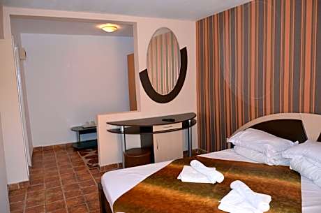 Club de Vacanta Corabia Piratilor - Family Resort Mamaia Nord is located 984 feet from the beach in Mamaia Nord. It offers a restaurant inside a boat and 2 seasonal swimming pools. Wi-Fi is free. Free private parking is possible on site. The air-conditioned apartments come with spacious living rooms and flat-screen TVs. Each has a kitchenette and a private terrace with a grass lawn and barbecue. Located on a quiet street, Vacanta Corabia Piratilor is 1.2 mi from Mamaia and 4.3 mi from Constanta. There is a Bus Stop right in front of the hotel, providing links to both resorts.