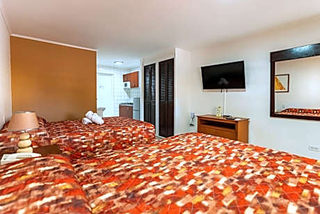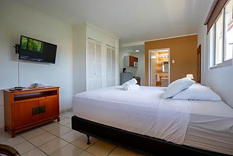 This room features free Wi-Fi, air conditioning, wardrobe, flat-screen cable TV, kitchenette with stove, coffee maker, microwave and fridge. This room type has a queen bed, and the bathroom is private.