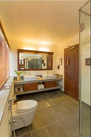 The luxury hotel is located on the small island of Virippukala in Ayimanam Panchayat, by the village of Kumarakom on the banks of the Vembanad lake. It is surrounded by paddy fields planted in a flat area by the lake. This area is geographically called a Kuttanad. Most of the paddy fields were reclaimed from the Vembanad Lake during the British colonial era for increased food production. In order to make the reclamation possible, a number of narrow canals were built. Today the area forms part of village life. The island also lies between 2 tributaries of the main river Meenachil. The international airport is 180 km away. The town centre, a train station and a bus station are some 15 km away. The towns of Kottayam and Cochin are 78 km away. The main railway station is located 60 km from the hotel. The hotel comprises a total of 50 rooms, air conditioning, a safe, a currency exchange counter, conference facilities and a laundry service. In addition to this the hotel has its own bar and restaurant. The rooms come with a bathroom, a hair dryer and centrally regulated air conditioning. They also have a minibar, a tea/coffee maker and a hire safe. There is a swimming pool with a children's paddling pool in the hotel grounds. Guests can also relax in the hot tub.