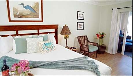 The award-winning Coconut Palm Inn is a private secluded oasis on the southern-tip of KeyLargo, Florida, in the town of Tavernier. TripAdvisor’s “Traveler’s Choice Award” 12 years running, Trip Savvy’s “Hall of Fame” and “Best Family Beach Resort”, “Kayak Travel Award” and the recipient of Travel and Leisure’s annual “40 Secret Hideaways” in the world are just some of the accolades of our locally owned, family operated property. Coconut Palm Inn offers 450 feet of private beachfront on the Florida Bay, a waterfront pool and has direct westerly views providing guests with spectacular sunsets. Our 19 renovated guest rooms and suites all have private decks and enjoy views of picture-perfect sunsets and overlook the immaculate beach, gardens, pool, marina, and Florida Bay on the edge of the Everglades National Park. There is a marina available for guests to dock their boats to enjoy watersports and fishing in thewaters of the Florida Keys. Guests enjoy world class amenities including a welcome beverage,nightly sunset celebrations, S’mores nightly by the firepit, beach games, morning snack basket,pool towels, fishing gear, fish cleaning station, kayaks, paddleboat, SUPs, bikes, and BBQ grills. Our 25,000 sq foot bayside beach area is dotted with tikis, sitting areas, hammocks, lounge chairs and Adirondacks with umbrellas making it an ideal place to relax and rejuvenate.