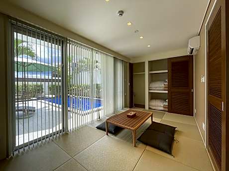 This villa features a private pool. Boasting a private entrance, this air-conditioned villa features 1 living room, 3 separate bedrooms and 1 bathroom with a walk-in shower and a bath. The well-equipped kitchen features a stovetop, a refrigerator, kitchenware and a microwave. The villa has a washing machine, tatami, a dining area as well as a terrace with pool views. The unit has 4 beds and 4 futons.