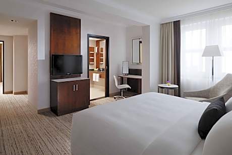 This stylish hotel in central Cologne offers spacious rooms and a modern gym. Cologne Marriott Hotel is a 3-minute walk from Cologne Main Station and 4 minutes from Cologne Cathedral. The air-conditioned rooms at the Cologne Marriott include a flat-screen TV, soundproofed windows and dark wood furniture. Free WiFi is available throughout the entire property. A full buffet breakfast as well as international dishes are served in the Cast Iron Grill. Guests are also welcome to relax in the Pluesch Bar & Lounge with its cozy seating area. The fitness area at the Cologne Marriott includes a modern gym. On-site parking is available at the Marriott Hotel Cologne. It is one stop by S-Bahn train from Kölnmesse Exhibition Center and the Lanxess Arena.