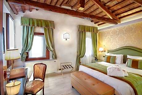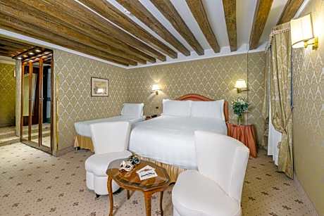 Just 328 feet from Saint Mark's Square, Hotel Colombina is set in a historic building overlooking the canal of the nearby Bridge of Sighs. The rooms have a traditional Venetian design, with multicolored marble floors. Each room offers air conditioning, free Wi-Fi, and a satellite flat-screen TV. The rooms on the top floor offer beautiful views including the Palazzo Ducale, and St. Mark's bell tower and dome. The hotel is set in Palazzo Colombina, and has a private water landing that you can use to arrive directly from the airport by water taxi. Just 984 feet away you will find San Zaccaria water bus stop. Breakfast is served every morning in the Francesco Guardi breakfast room located in the main building, while guests staying in the annex enjoy breakfast in a dedicated lounge. Drinks can be enjoyed at the American bar, La Bauta, also in the main building. Friendly staff at the 24-hour reception can assist you with tourist information. Staff can also provide free city maps.