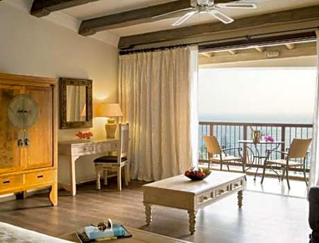 Located right on Pissouri Bay Beach, Columbia Beach Resort is set within extensive landscaped gardens. It has 2 swimming pools, one of which is an 262 foot lagoon-style pool, 3 restaurants and 6 bars. All suites have stone floors, natural wood furnishings and shutters, and overhead ceiling fans to keep them cool. Each has a balcony with views of the gardens or the sea. Facilities include Nespresso coffee makers, Molton Brown toiletries, bathrobes and slippers. The on-site Apollo Tavern serves all-day à la carte local cuisine, including Cypriot meze. Bacchus Restaurant serves Italian gourmet and Cape Aspro offers al fresco dining with Asian inspired fare. On select nights all 3 restaurants are accompanied by resident musicians. The on-site Eros Cocktail Bar features superb views of the surrounding areas. There are also 1 beach bar, 2 pool bars, the Seven C's Bar and the Ouzeri. The Columbia Beach Resort’s Hébe Spa features 6 treatment rooms, a hot tub, plunge pool, and a gym. The aerobic room offers a regular schedule of fitness classes and yoga. The Den Kids Club and Cub Life Creche are available. Within 5.3 mi, you can visit the famous Rock of Aphrodite. Paphos Airport is 16 mi away, while at 22 mi you can reach the seaside city of Limassol.