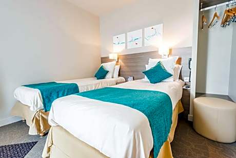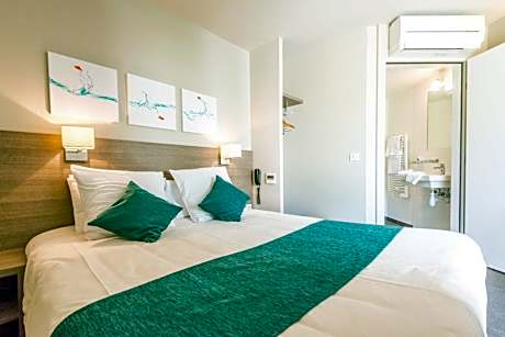 Kyriad Annemasse Geneve is located in Annemasse, 1.2 mi from the train station and 5 mi from Geneva. It offers free Wi-Fi internet access and free on-site parking. All of the rooms with attached bathroom at this Kyriad hotel are air-conditioned and have satellite TV and tea and coffee facilities. Breakfast is available daily in the breakfast room at an extra charge. Guest can enjoy the free daily newspapers. Kyriad Annemasse Geneve offers affordable accommodations for overnight or short stays in the area. From now on, you'll be able to recharge your electric vehicles thanks to our charging station. Our hotel is atypical. It consists of 4 single-story buildings with 32 rooms (Standard doubles and twins) and 1 2-story building with 49 rooms (Superior doubles, twins, junior triples and families).
