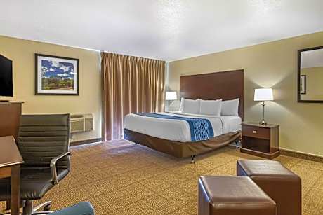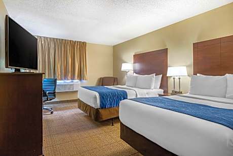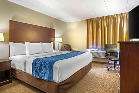 This hotel is 3 miles from the Gerald Ford International Airport. The hotel offers a flat-screen TV in every room. Comfort Inn Grand Rapids Airport rooms include a microwave and refrigerator. The rooms are equipped with free WiFi and cable TV. The Comfort Inn Airport provides guests with a free continental breakfast. The hotel also offers a 24-hour gym. Comfort Inn Grand Rapids is one mile from the Woodland Mall, which features shopping and dining. The hotel is 8 miles from downtown Grand Rapids and the Frederick Meijer Gardens and Sculpture Park.