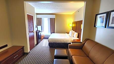 Located in the heart of the Pocono Mountains, the 100 percent nonsmoking Comfort Inn & Suites Mount Pocono hotel is close to popular area attractions. Nearby, visitors will find the Pocono Raceway, Camelbeach Waterpark and Peddler's Village, a premier shopping, dining and entertainment destination. For outdoor enthusiasts, Bushkill Falls and Delaware Water Gap National Recreation Area, offering white-water rafting, canoeing, kayaking, fishing and swimming, are only minutes away. Mount Airy Casino is four miles from the hotel. Skiers and snowboarders will appreciate the five major ski areas just minutes from this hotel. Additional points of interest include the Crossings Premium Outlets shopping center, American Candle Company and the Pocono Indian Museum. Several restaurants and cocktail lounges are located in the surrounding area. The hotel features a free breakfast, an indoor heated pool, hot tub, fitness room and game room. Business travelers can welcome the spacious work areas, high-speed Internet access and voice mail in every room. This hotel has a business center with meeting rooms that are perfect for hosting most functions. Guest rooms at this hotel come with coffee makers, hair dryers, safes, irons and ironing boards. In addition to standard amenities, some rooms have microwaves. For guest convenience, laundry facilities are located on the premises. The hotel also has a public safe.