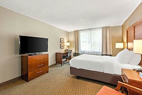 The Eco-friendly Comfort Inn & Suites North Conway North Conway hotel is a great place to stay for families and shoppers during the summer and winter months, as well as those looking for a quiet spring or fall getaway. We are now participating with the Clean the World organization by recycling used amenities launching a global "hygiene revolution" with soap. The hotel is adjacent to Pirate's Cove Adventure Golf, where visitors can putt around the world of 18th century pirates. The hotel is close to, Story Land children's theme park, Conway Scenic Railroad, Cranmore Mountain winter ski slopes and summer camp and Attitash winter ski slopes and summer adventure park. Visitors will enjoy tax-free shopping at the many nearby stores and boutiques at Settler's Green Outlet Village. A variety of restaurants and cocktail lounges can be found in the surrounding area. Hotel amenities and features include, free wireless high-speed Internet access, free local calls as well as access to copy and fax services. After a busy day, enjoy a workout in the hotel's exercise room. Guests will also enjoy the indoor heated pool. This North Conway, NH hotel offers studio suites with oversize rooms and partially divided sleeping and sitting areas. All guest rooms include refrigerators, microwaves, 49-inch LCD televisions with HBO, wet bars, coffee makers, irons, ironing boards and hair dryers. Some rooms feature whirlpool bathtubs. Laundry facilities are located on the property for guest convenience.