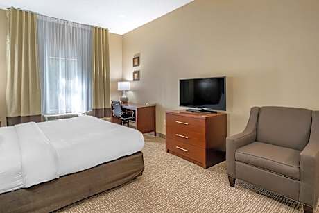 Comfort Inn & Suites St Louis-O'Fallon hotel is near the Mid Rivers Mall, Ozzie Smith Sports Complex and T.R. Hughes Ballpark. The National Equestrian Center, Family Arena, St. Charles Convention Center, Historic St. Charles and Six Flags St. Louis are just minutes away. Located just off Interstate 70, this hotel is within walking distance of the Veterans Memorial Walk, a park dedicated to honor all U.S. military personal as well as American veterans of all eras. Points of interest in nearby St. Louis include Gateway Arch Riverfront, Anheuser-Busch Brewery tours, Saint Louis Zoo, St. Louis Science Center and Forest Park. Additional attractions, including St. Peters Rec-Plex, Lindenwood University Ice Arena, the Ameristar Casino St. Charles, UMB Bank Pavilion, Scottrade Center (formerly the Savvis Center) and Katy Trail State Park, are located near this hotel. The city of O'Fallon is also one of the fastest growing cities in the country, which is home to some of the world's largest corporations. There is a wide variety of restaurants within a few minutes of the hotel, with several offering free delivery. Enjoy our free hot breakfast featuring eggs, meat, yogurt, fresh fruit, cereal and more, including your choice of hot waffle flavors. Many full-service amenities are offered including a free weekday newspaper and free local calls. Guests of this pet-friendly hotel will enjoy an indoor heated pool, hot tub and 24-hour fitness center. Business travelers will appreciate free high-speed Internet access in all rooms, free wireless high-speed Internet access in the lobby and breakfast area, and the 24-hour business center with printing, copying and faxing capabilities. Meeting space is available for shows, rehearsals, seminars and a wide variety of events. There is also a boardroom available for executive meetings. All rooms include refrigerators, microwaves, coffee makers, irons, ironing boards, hair dryers and two-line speaker telephones. Suites with whirlpool bathtubs can be requested. Suites also feature sitting areas with sofa sleepers. Guest laundry facilities are also available. Nonsmoking rooms can be requested.
