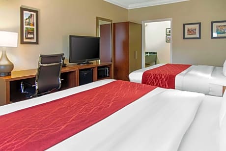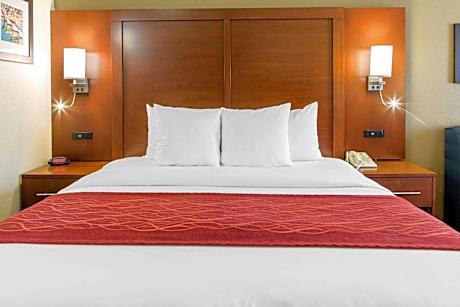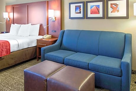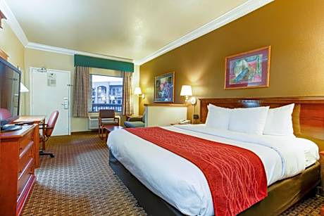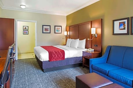 The Comfort Inn & Suites San Francisco Airport North is conveniently located off Highway 101, just three miles from the San Francisco International Airport. This South San Francisco, CA hotel is minutes from attractions like Monster Park, Cow Palace, Fisherman's Wharf, PIER 39 and the Golden Gate Bridge. Downtown San Francisco, The Moscone Center, the South San Francisco Conference Center, the San Francisco Cow Palace and the San Mateo County Event Center are also close to the hotel. A variety of restaurants is located in the surrounding area. Located in South San Francisco, CA, our hotel takes pride in offering an array of amenities designed to enhance our guests' comfort and satisfaction. Guests can take advantage of complimentary airport transportation provided in the morning and evening, ensuring seamless travel experiences. In addition, complimentary coffee and tea await in the lobby, providing a welcoming touch upon arrival. Furthermore, all rooms are equipped with free wireless high-speed Internet access, catering to the connectivity needs of modern travelers. Start your day with our complimentary hot breakfast, which includes eggs, meat, yogurt, fresh fruit, cereal, and a selection of hot waffle flavors. Additionally, guests have the option to relax in our garden courtyard area or utilize the on-site fitness room. For business travelers, we offer a fully equipped business center and our courteous Guest Service agents are available to assist you in accessing fax and copy services. Our deluxe standard rooms feature one king bed with a queen-sized sofa sleeper, along with amenities such as refrigerators, microwaves, coffee makers, irons, ironing boards, hair dryers, and cable television with channels including Showtime, ESPN, Cartoon Network, Nickelodeon, and on-demand movies. For dining convenience, local restaurants nearby provide food delivery to guest rooms. Furthermore, guests have access to an on-site coin-operated laundry facility and ATM machine.