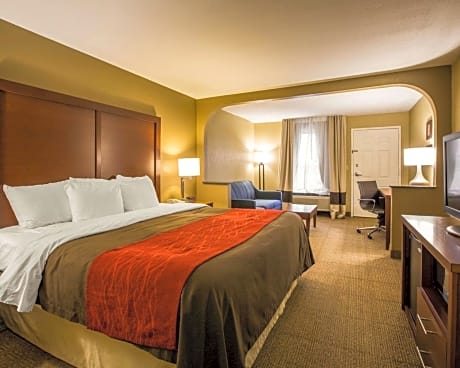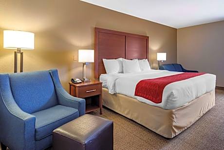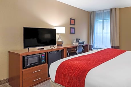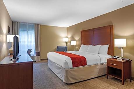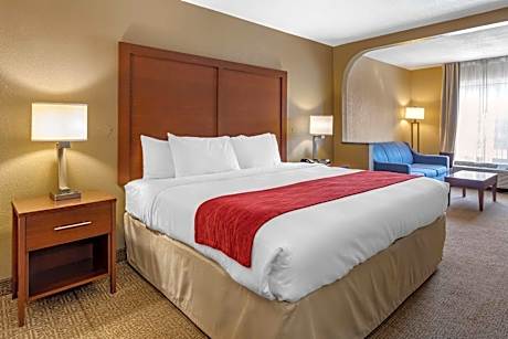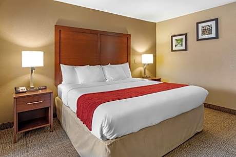 The Comfort Inn West is conveniently located off Interstate 40, just 10 miles from the Asheville Regional Airport. This Asheville, NC hotel is minutes from area attractions like the scenic Blue Ridge Parkway, Harrah's Cherokee Center, the University of North Carolina at Asheville and Chimney Rock Park. The hotel is only six miles from the Biltmore Estate, America's largest private home, built by George Vanderbilt in 1895 and still owned and operated by his descendants. Great Smoky Mountains National Park is 40 miles from the hotel. A variety of restaurants and cocktail lounges are located in the surrounding area. The hotel is adjacent to a Cracker Barrel Old Country Store and Restaurant and a driving range. Enjoy our free hot breakfast featuring eggs, meat, yogurt, fresh fruit, cereal and more, including your choice of hot waffle flavors. Guests of this hotel are invited to enjoy many amenities, including free local calls and free coffee. Guests will also enjoy the hotel's exercise room and seasonal outdoor pool. Business travelers will appreciate conveniences like free wireless high-speed Internet access in all rooms, spacious work desks and access to copy and fax services. The meeting room accommodates up to 15 people for most events and business functions. All spacious guest rooms come equipped with refrigerators, microwaves, irons, ironing boards, hair dryers and coffee makers. Some rooms also feature whirlpool bathtubs. Nonsmoking rooms are available. There is a 24-hour laundry room and a newsstand located on the property for added guest convenience.