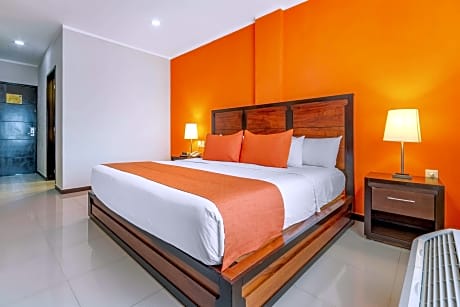 This bright, modern room is air conditioned and has flat-screen cable TV. Decorated in orange and white, it comes with a safe, work desk and coffee maker. There is a hairdryer in the bathroom.