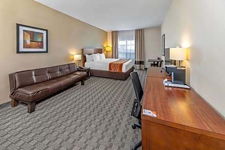 Whether you are traveling for business or pleasure, the Comfort Inn hotel provides warm and inviting accommodations near many local points of interest. The Northern Alberta Railways terminal, Walter Wright Pioneer Village and Rotary Lake are all conveniently located near this Dawson Creek, British Columbia hotel. Known as Mile 0 City, Dawson Creek is located at the southern end of the Alaska Highway. The surrounding region offers a number of outdoor recreation areas, entertainment venues and shopping centers. There are many restaurants nearby. Hotel amenities include: Free hot breakfast, Free Wi-Fi Internet access, Free weekday newspaper, Free local calls, Free coffee in the lobby. Guests of this Dawson Creek, British Columbia hotel can also enjoy features like the on-site fitness center, sauna, business center, public computer with Internet access, access to copy and fax services and a meeting room. All well-appointed guest rooms are furnished with flat-screen televisions, microwaves, refrigerators, coffee makers, spacious work desks, voice mail, hair dryers, irons, ironing boards and cable television. Select rooms also have sofa sleepers. Laundry facilities are located on the premises and on-site parking is provided. Cold-weather hookups can be requested.
