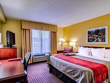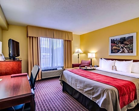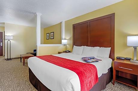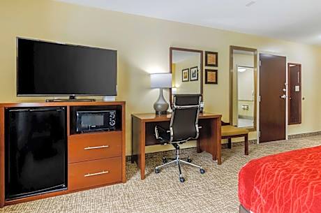 The Comfort Inn hotel is conveniently located just two miles from the annual Labor Day Flea Market & Gun Show, one of the largest shows in the southeast, offering antique dealers, gun dealers and traders of all kinds. This Hillsville, VA hotel is minutes from the scenic Blue Ridge Parkway, New River Trail State Park, Crossroads Institute and the Twin County Regional Healthcare hospital in Galax. All guest rooms come equipped with coffee makers, hair dryers, irons, ironing boards and cordless speaker phones. In addition, suites have sofa sleepers. Nonsmoking rooms are available. Hotel amenities and features at this Virginia hotel include: Indoor heated pool, hot tub and fitness center; Free wired and wireless high-speed Internet access in all rooms; 32-inch flat-screen LCD televisions in all rooms; Microwaves and refrigerators in all rooms; Whirlpool suites Enjoy our free hot breakfast featuring eggs, meat, yogurt, fresh fruit, cereal and more, including your choice of hot waffle flavors! Free fresh-baked cookies are served every evening. Free coffee, juices, hot chocolate, bottled water, fresh fruit and a variety of flavored hot teas are available 24 hours a day. This Hillsville, VA hotel provides business travelers with conveniences like free local calls, access to copy and fax services, and an outgoing mail drop box. The meeting room accommodates up to 36 people. The town of Hillsville and the city of Galax are home to several annual events, including the Old Fiddler's Convention, Smoke on the Mountain Virginia State Barbecue Championship and the Blue Ridge Music Center summer concerts. Visitors will enjoy horseback riding, mountain biking and hiking just minutes from the hotel. For shoppers, the Ft. Chiswell Outlets mall and several antique stores are minutes away. A variety of restaurants and cocktail lounges are within walking distance.
