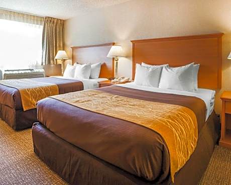 Centrally located off Interstate 405, the Quality Inn Kirkland is less than five miles from downtown Bellevue, and 20 miles from Seattle and its many famous attractions. This Kirkland, WA hotel is minutes from Redmond, Lake Washington, Chateau Ste. Michelle winery, the Columbia Winery and the Redhook Ale Brewery in Woodinville. Evergreen Hospital Medical Center is less than one mile away. There are two hospitals within five minutes of the hotel. Several shopping areas are also nearby. A variety of restaurants and cocktail lounges are located in the surrounding area. Additional nearby points of interest include Woodland Park Zoo, Seattle Aquarium, Pike Place Market, Seattle's world-famous Space Needle and Emerald Downs horse racing venue. Hotel amenities and features include free parking, free wireless high-speed Internet access, free weekday newspaper, free local calls and free coffee. Enjoy our free hot breakfast featuring eggs, meat, yogurt, fresh fruit, cereal and more. Guests of this Kirkland, WA hotel can enjoy relaxing in the seasonal outdoor pool and hot tub. Enjoy a great workout in the hotel's exercise room with state-of-the-art equipment. Business travelers can appreciate conveniences like voice mail and access to copy and fax services. All spacious guest rooms come equipped with refrigerators, coffee makers, irons, ironing boards, hair dryers and satellite television with free HBO. Some rooms have microwaves. Two-room suites feature kitchenettes and living room areas. The hotel is 100% smoke free.