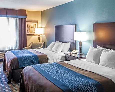 The Comfort Inn, a Lees Summit, MO hotel, is located within minutes of popular area shopping attractions, including Summit Fair and Summit Woods Crossing. The hotel also offers easy access to Adventure Oasis Water Park and Longview Lake, as well as several Kansas City attractions like Oceans of Fun, Worlds of Fun and the Kansas City Zoo. Guests of this hotel are invited to relax in the indoor heated pool and hot tub, and work out in the exercise room. Guest laundry facilities are available. Other amenities include, free wireless high-speed Internet access, free weekday newspaper and free coffee. All spacious guest rooms offer a 32-inch LCD flat-screen television with cable, a desk, refrigerator, microwave, coffee maker, hair dryer, iron and ironing board. Spacious suites are available that include a sofa sleeper. Some rooms also include a wet bar and whirlpool bathtub.