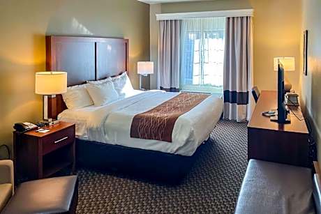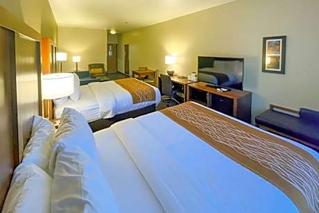The Comfort Inn Midtown hotel is conveniently located just three miles from the Eagle Creek Sports Complex. The Ruidoso Convention Center, Ski Apache, Ruidoso Downs Race Track and Billy the Kid Casino are minutes from this Ruidoso, NM hotel. The hotel is located in the heart of Ruidoso's midtown shopping district. Guests can walk to shops, restaurants and galleries. Nestled in the tall pines of historic Lincoln County, Ruidoso, New Mexico offers activities for all seasons. The hotel is minutes from golfing, hiking, horseback riding and fishing. While visiting the village of Ruidoso breathe in the fresh mountain air and enjoy the views. Breakfast is full of hot and cold options featuring eggs, meat, yogurt, fresh fruit, cereal and more, including your choice of hot waffle flavors! After a long day of work or play, guests will enjoy unwinding in the indoor heated pool and hot tub. This Ruidoso, NM hotel also features a fitness center and free local calls. Business travelers will appreciate conveniences like free wireless high-speed Internet access in all rooms and the conference room. The business center offers high-speed Internet access and a laser printer. Access to fax and copy services is available at the front desk. All guest rooms are equipped with 32-inch LCD televisions, refrigerators, microwaves, hair dryers, coffee makers, irons and ironing boards. Nonsmoking rooms are offered. Groups and tour busses are welcome.