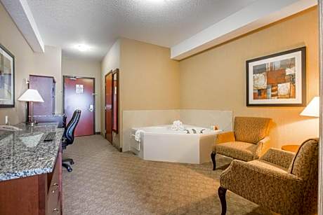 This Airdrie, Alberta hotel is located 20 minutes north of the Calgary International Airport. The hotel features an indoor pool, hot buffet breakfast and rooms with a 32-inch LCD TV. Fiber optic WiFi for up to 5 devices is provided. Every room at Comfort Inn and Suites Airdrie is equipped with a microwave, refrigerator and Keurig® coffee maker. Free WiFi for up to 5 devices and cable TV are also included. Select rooms offer a large seating area. Airdrie Comfort Inn offers guests a gym and a business center on site. Guests can take advantage of the free parking and free daily coffee. Complimentary popcorn is provided in the lobby during the afternoon. CrossIron Mills Shopping Center, the Airdrie Twin Arenas are both within a 10-minute drive of this Comfort Inn. Fraserway RV Rentals is located just over 1.2 mi and East Lake Aquatic Center is only 5 minutes away.