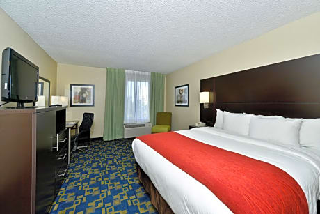 Comfort Inn & Suites Near Universal Orlando Resort-Convention Ctr in Orlando, Florida is 9 minutes’ drive from Orange County Convention Center, host to Megacon sci-fi and comic book convention. Disney World and SeaWorld are 12 minutes’ drive from the property while the shops of Orlando International Premium Outlets are 10 minutes’ drive. A grab-and-go breakfast is available. Guests can enjoy free WiFi and access to the outdoor pool. Guest launderette services are available on site. Each room is equipped with a microwave and small refrigerator. A flat-screen TV, coffee maker, hair dryer, and ironing facilities also come standard in every room. Select suites feature a sofa bed. Free parking is available on site, as is free coffee. The business center offers copy and faxing services.