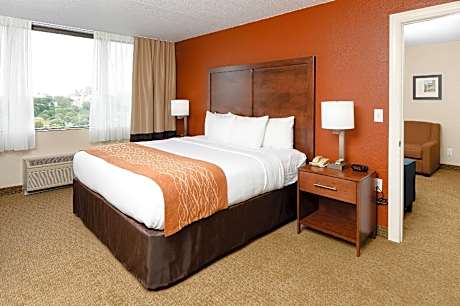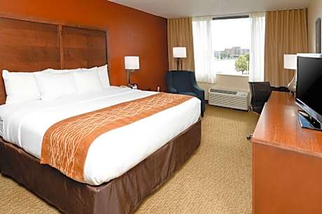 Located right across the street from the Casey Center, the EMC Expo Center and Community Choice Credit Union Veterans Memorial Auditorium, this hotel is located at Interstate 235 and features complimentary hot breakfast buffet and free parking. A satellite TV is included in every guest room at Comfort Inn & Suites Event Center. A hair dryer, microwave, and refrigerator are provided for guests’ convenience. Comfort Inn & Suites Event Center has a fitness center. A 24-hour front desk, free newspapers, and dry cleaning services are provided. Complementary full breakfast buffet is included each morning along with free parking. Views of the State Capitol and Des Moines River Valley can be enjoyed form property grounds. Des Moines International Airport is 6.8 mi away. Drake University campus center is 7 minutes’ drive away.