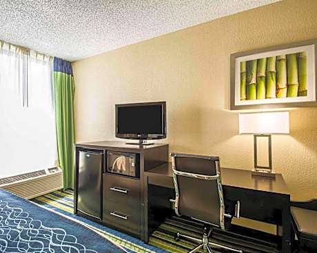 The Comfort Inn & Suites - Lantana - West Palm Beach hotel is conveniently located minutes from the Boynton Beach Mall. This Lantana, FL hotel is minutes from Florida Atlantic University, Florida International University, the Raymond F. Kravis Center for the Performing Arts, Lion Country Safari and the Port of Palm Beach. The Palm Beach International Airport is eight miles away. All spacious guest rooms include refrigerators, microwaves, coffee makers, hair dryers, safes and premium cable television with ESPN and four HBO channels. Suites include whirlpool bathtubs and full-sized sofa sleepers. Business and honeymoon suites are available. Full-service amenities and features include: Free wired and wireless high-speed Internet access in all rooms and the lobby; Free local calls; Free newspaper; Free coffee in the lobby. For business travelers, this Lantana, FL hotel also offers conveniences like a lobby computer and access to copy and fax services. The meeting room features a television, a VCR, a projector and a screen. Enjoy our free hot breakfast featuring eggs, meat, yogurt, fresh fruit, cereal and more, including your choice of hot waffle flavors! Guests will also enjoy the expanded exercise room and outdoor heated pool. Guest laundry facilities are available on site. There is plenty of free parking available. The hotel has 24-hour guest services. Nearby businesses and attractions include: JFK Medical Center; Cruzan Amphitheater At The South Florida Fairgrounds; Henry Morrison Flagler Museum; Quantum Corporate Park; The Morikami Museum and Japanese Gardens Within just three miles of the hotel one will encounter a yacht club, a marina, saltwater fishing and a beautiful ocean that is perfect for scuba diving and jet ski rentals. Several beaches, championship golf courses, tennis courts and a variety of restaurants are located in the surrounding area.