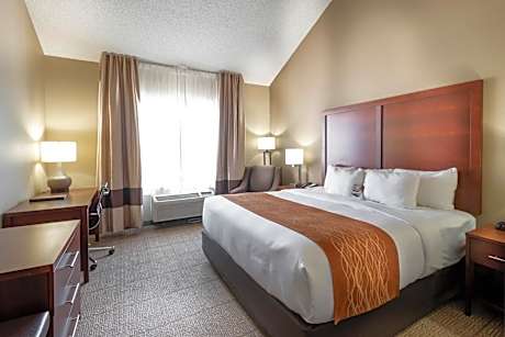 This hotel is located off Interstate 35 East and is 3 miles from the Dallas Market Center. Comfort Inn & Suites Love Field – Dallas Market Center rooms are equipped with a microwave and a refrigerator. The rooms also have free WiFi and a 32-inch flat-screen TV. Guests can work out in the fitness center or keep in touch with family and colleagues on the computer in the business center. The Comfort Inn & Suites Love Field – Dallas Market Center is 5 miles from American Airlines and 3 miles from Dallas Love Field Airport. The Children’s Medical Center and UT Southwestern Medical Center are within a 5-minute drive of the hotel.