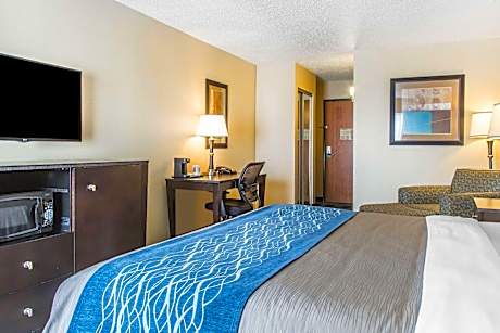 This Meriden, Connecticut hotel is located just off Interstate 91 and is 13 mi from the Mount Southington Ski Area. Facilities include free WiFi access and meeting rooms. A 39-inch flat-screen TV with cable channels is featured in each guest room at the Comfort Inn & Suites Meriden East Meriden. A microwave and refrigerator are also included in all rooms. Guests can visit the fitness center or the business center at the Meriden Comfort Inn & Suites Meriden East. A daily continental breakfast with bacon and eggs is served every morning in the lobby. Dinosaur State Park is 11 mi from the hotel. Central Hartford is 20 minutes’ drive away.