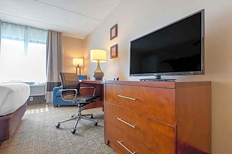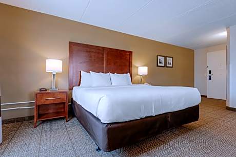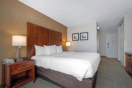 The Comfort Inn The Pointe is located at the entrance of Niagara Falls State Park and so close to Niagara Falls you can feel the mist. Major attractions within walking distance include the Aquarium of Niagara, Hard Rock Cafe Niagara Falls USA, Cave of the Winds tours, the Rainbow Bridge, the gateway between the cities of Niagara Falls, and Maid of the Mist, one of America's oldest tourist attractions. The Conference Center Niagara Falls is only two blocks away. Fashion Outlets of Niagara Falls USA is just minutes from the hotel. Nearby casinos include the Seneca Niagara Casino, Niagara Fallsview Casino and the Casino Niagara. This Niagara Falls, NY hotel is a short drive from Niagara University, the New York Power Authority's Power Vista, Artpark, a performing and visual arts entertainment facility, historic Lewiston and Old Fort Niagara. Following your sound night’s rest, wake-up renewed for the day ahead with a free hot breakfast with coffee, juice, bakery item and choice of breakfast sandwich. Your Grab It & Go Breakfast Bag will be ready so that you will be recharged and on time for your days activities. Business travelers can appreciate conveniences like free wireless high-speed Internet access in every room. All beautifully appointed rooms include hair dryers, coffee makers, irons, ironing boards and 40" high-definition televisions with over 35 channels. Some rooms at this New York hotel also offer views of the thundering rapids that lead to the brink of the "Falls." Special rates for AAA and AARP members are offered.