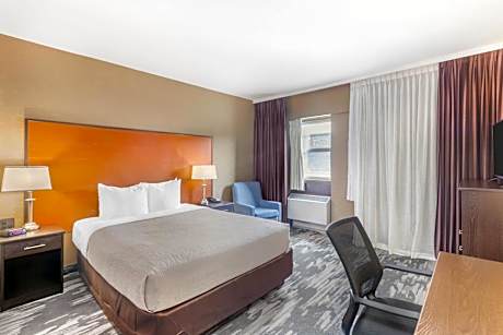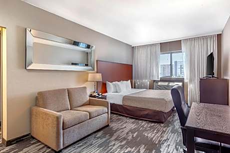 Providing complimentary airport shuttle service to Toronto's Pearson International Airport and offering easy access to the downtown area, this Toronto hotel features a free daily breakfast and free wireless internet. The Quality Inn Toronto Airport is conveniently placed only a short distance from public transportation systems leading to downtown Toronto. Woodbine Center shopping mall and Canada's Wonderland amusement park are also easily accessible. While staying at the Quality Inn Toronto Airport, guests can enjoy starting the day with a cup of coffee from in-room coffeemakers and a free weekday newspaper. The hotel also offers an on-site fitness center as well as a convenience store and on-site restaurant and lounge.